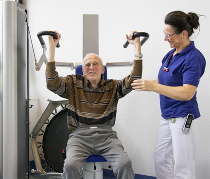 Häufig steht der Schmerz, die verminderte Kraft und Ausdauer im Mittelpunkt. Eine effiziente Schmerztherapie, Stärkung der Muskulatur und Belastungsaufbau sind ein großer Bestandteil unserer täglichen Arbeit. Nach der Befundaufnahme wird gemeinsam mit dem Patienten im interdisziplinären Team ein individuell angepasster Therapieplan erarbeitet. In Einzel- und Gruppentherapien werden Fähigkeiten verbessert und stabilisiert.